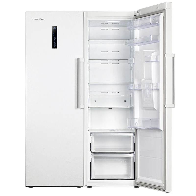 یخچال و فریزر دوقلو 40 فوت پاکشوما مدل RTRA-RTFA901iW (N2)، دارای نمایشگر و بدون برفک، با ارتفاع 187، پهنای 118 و عمق 73 سانتیمتر، میزان مصرف انرژی A+، دارای 5 طبقه در یخچال و 4 کشو در فریزر، دارای سیستم نوفراست